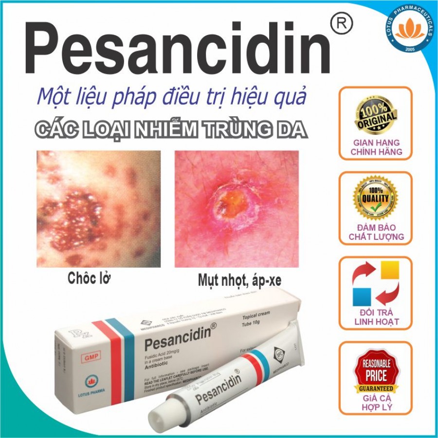 Pesancidin là thuốc dùng để điều trị các bệnh da liễu do bị nhiễm Staphylococcus, Streptococcus và các bệnh nhiễm khuẩn khác có nhạy cảm với fucidic acid, bao gồm: Viêm nang lông, chốc, nhọt, viêm quanh móng, viêm tuyến mồ hôi…