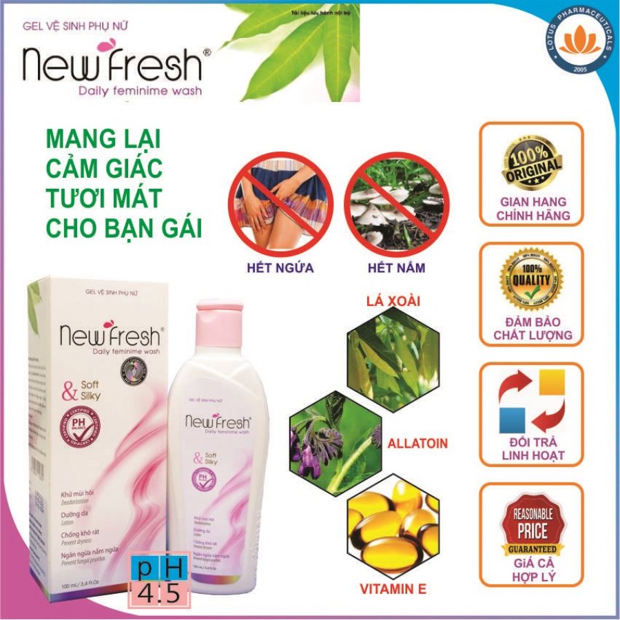 -New Fresh® là gel vệ sinh phụ nữ mang lại cho bạn một cảm giác sạch sẽ,tươi mát và dịu nhẹ. Với PH cân bằng tự nhiên trên da, không chứa xà phòng rất phù hợp với vùng da mỏng nhạy cảm.