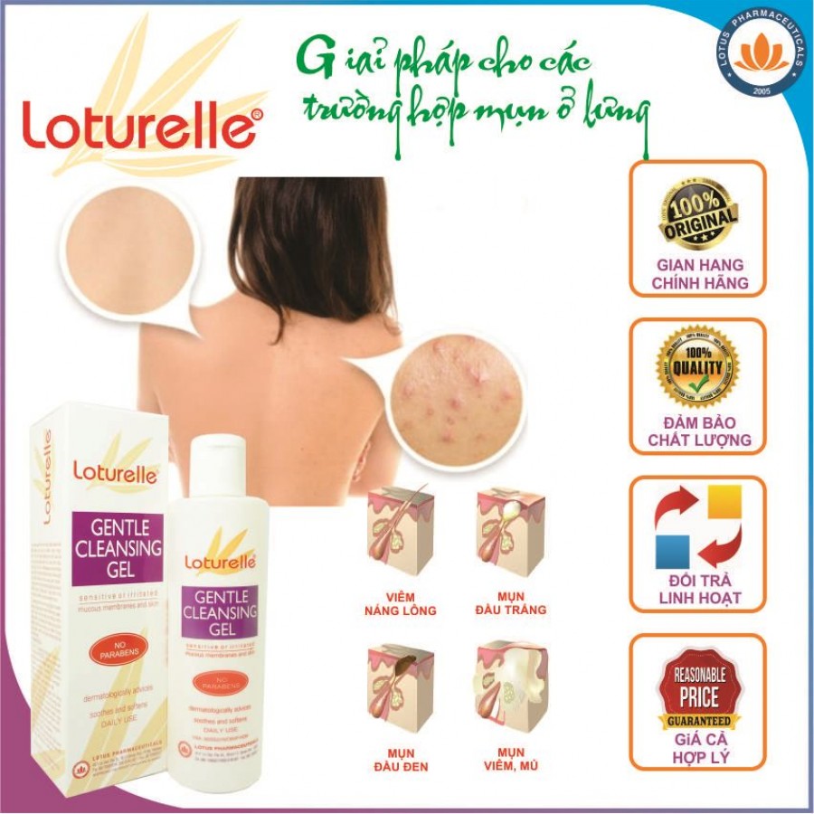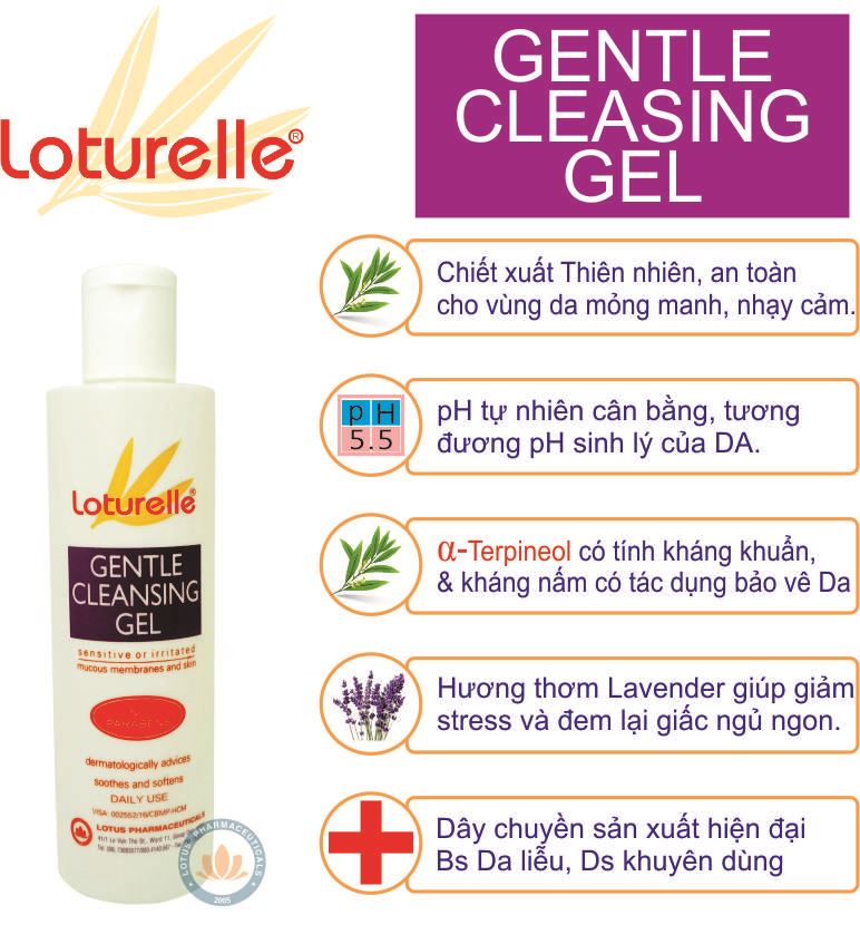 [FREESHIP + QUÀ 49K] Loturelle Gentle Cleansing Gel – Gel tắm dịu êm cho da nhạy cảm, hương thơm bền lâu, hiệu quả cho trường hợp mụn trứng cá ở lưng được Bác sỹ Da liễu khuyên dùng – Tặng cream chống nhiễm khuẩn da trị giá 49K