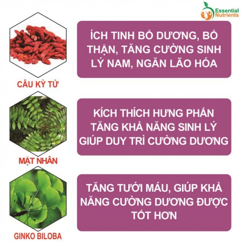 - Ginko Biloba: Tăng tưới máu, giúp khả năng cường dương được tốt hơn