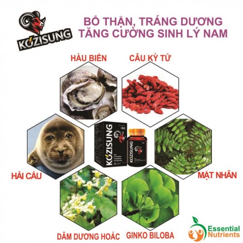 KOZISUNG BỔ THẬN TRÁNG DƯƠNG, MẠNH GÂN CỐT, GIÚP TĂNG CƯỜNG SINH LỰC & KHẢ NĂNG SINH LÝ NAM, TĂNG CHẤT LƯỢNG TINH TRÙNG, HỖ TRỢ ĐIỀU TRỊ VÔ SINH