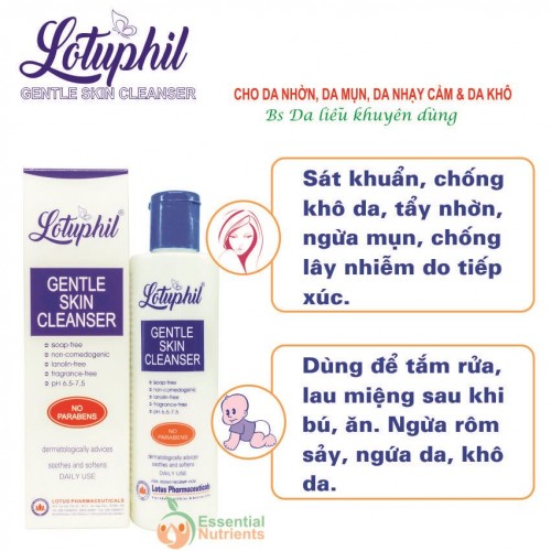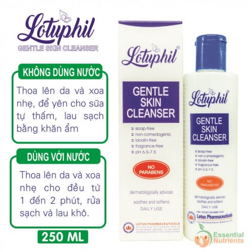LOTUPHIL GENTLE SKIN CLEANSER 250 ml - SỮA RỬA MẶT DỊU ÊM, NGĂN NGỪA MỤN, THÍCH HỢP CHO DA NHỜN, DA KHÔ, DA NHẠY CẢM