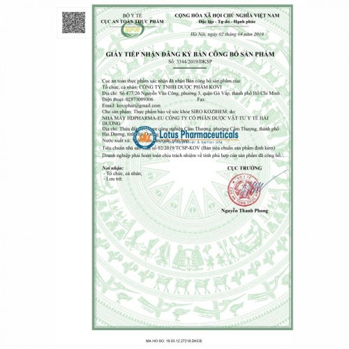 Sản xuất tại: NHÀ MÁY HDPHARMA-EU CÔNG TY CỔ PHẦN DƯỢC VẬT TƯ Y TẾ HẢI DƯƠNG (ĐẠT CHUẨN GMP)